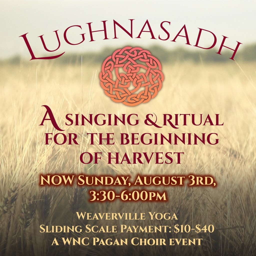 At this event, join members of the WNC Pagan Choir as we learn several songs in celebration of the harvest, Lugh and the grain mothers of mythology. We’ll focus on easy-to-learn parts songs that produce powerful and mesmerizing harmonies, while enjoying percussion from Jay Beck! We’ll weave folklore and ritual into our experience along the way.